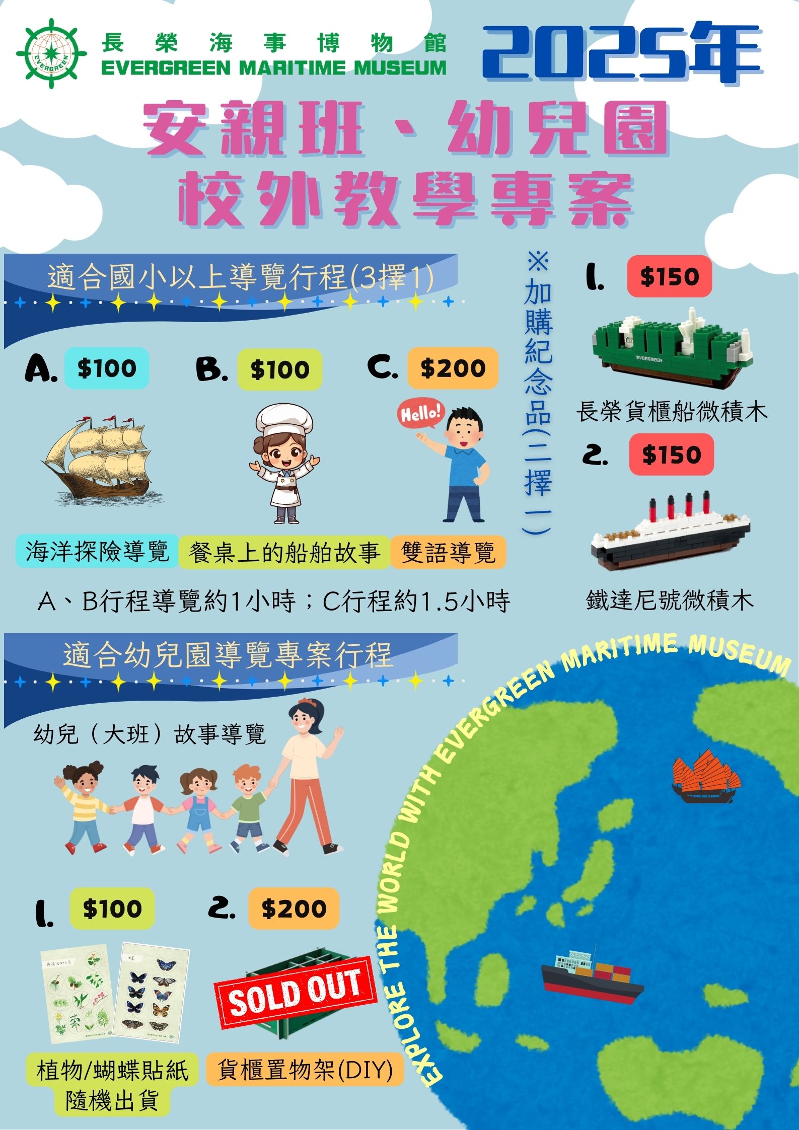 5.若不加購紀念品純聽導覽,每位學生$100元。