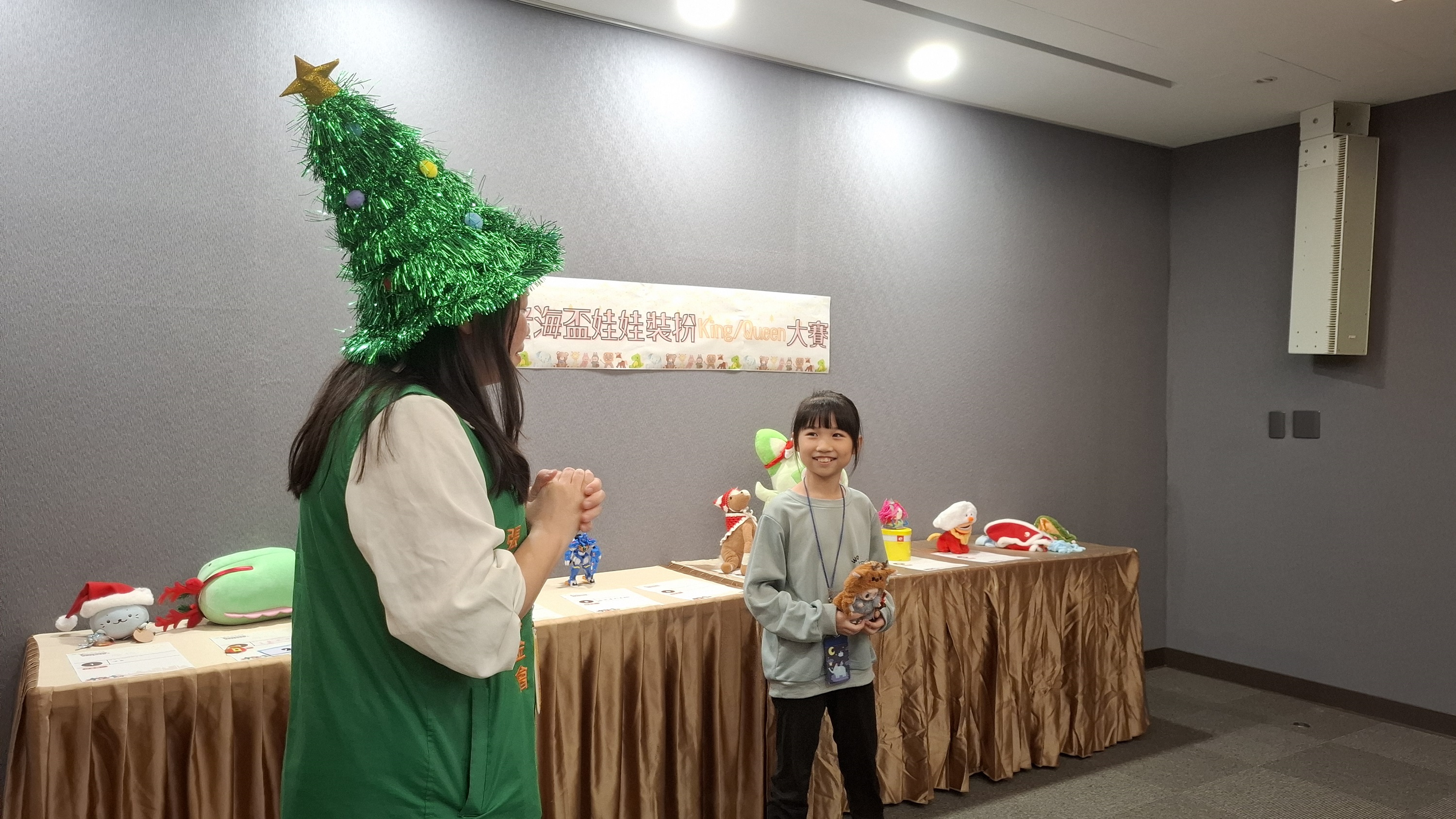 聖誕主題活動邀請民眾將心愛的娃娃打理聖誕裝扮,首先由本館導覽老師丐幫幫主穿上薑餅人裝,為大小朋友導覽與聖誕節有關的船舶故事。民眾需仔細聆聽,方能在接下來的「尋寶拍照遊戲」中找到謎底的船隻。最後,由孩子們輪流出來介紹自己帶來的娃娃打扮重點,為自己的娃娃拉票,由票選最高的前三名獲得市價$790元「長榮咖啡手沖壺禮盒」,孩子們也有專屬的小禮物。當天出現了4名同分者,人人皆有獎,讓大家都能帶著開心的聖誕回憶回家~!